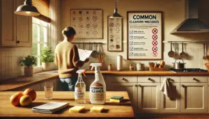 掃除は安全第一。塩素系漂白剤と酸性剤(クエン酸・お酢等)は絶対に混ぜない、手袋と換気を徹底します。