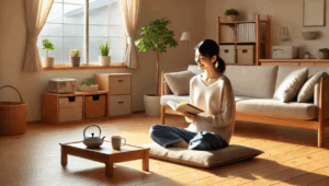 整った部屋で過ごす時間は、心を穏やかにしてくれます。お気に入りの香りを漂わせたり、観葉植物を置いたりと、自分らしいリラックス空間をつくるのもおすすめ。片付けを“義務”ではなく、“自分をいたわる時間”として楽しみましょう。