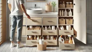 - 洗剤は使用頻度順に手前へ。ボトルはラベル面を同方向に。