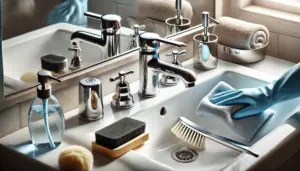 - メッキ水栓:硬い研磨は傷の原因。布+中性洗剤→乾拭き→必要なら微量のメラミンで点使い。
